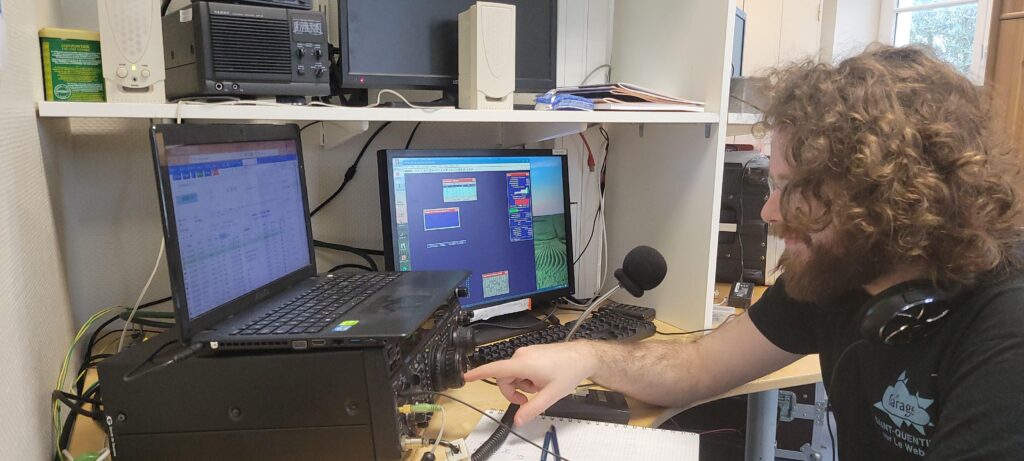 L’optimisation du matériel ne s’est pas faite sans humour : un démarrage un peu décalé nous a offert une grasse matinée imprévue (début à 9h !). Finalement, ce n’était pas plus mal : si le 80m avait fonctionné parfaitement dès l’aube, il aurait fallu être au micro bien plus tôt ! 🤣